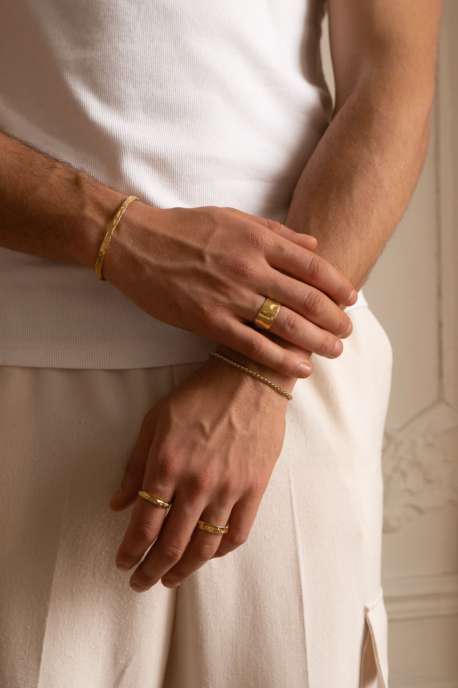Experimente la sofisticación refinada con el anillo Calm Ring. Cada anillo está meticulosamente diseñado para convertirse en una firma personal, reflejando su estilo distintivo y su espíritu creativo. Disponible en acero inoxidable de primera calidad o en lujoso acero inoxidable chapado en oro de 18 quilates, este anillo combina durabilidad y elegancia. Fabricado para resistir el uso diario, es resistente al agua, al sudor y a la decoloración, además de ser hipoalergénico, lo que garantiza una comodidad sin concesiones. Con tres opciones de tamaño y una garantía de por vida, el anillo Calm Ring está diseñado para durar y pensado para aquellos que aprecian la artesanía de calidad.